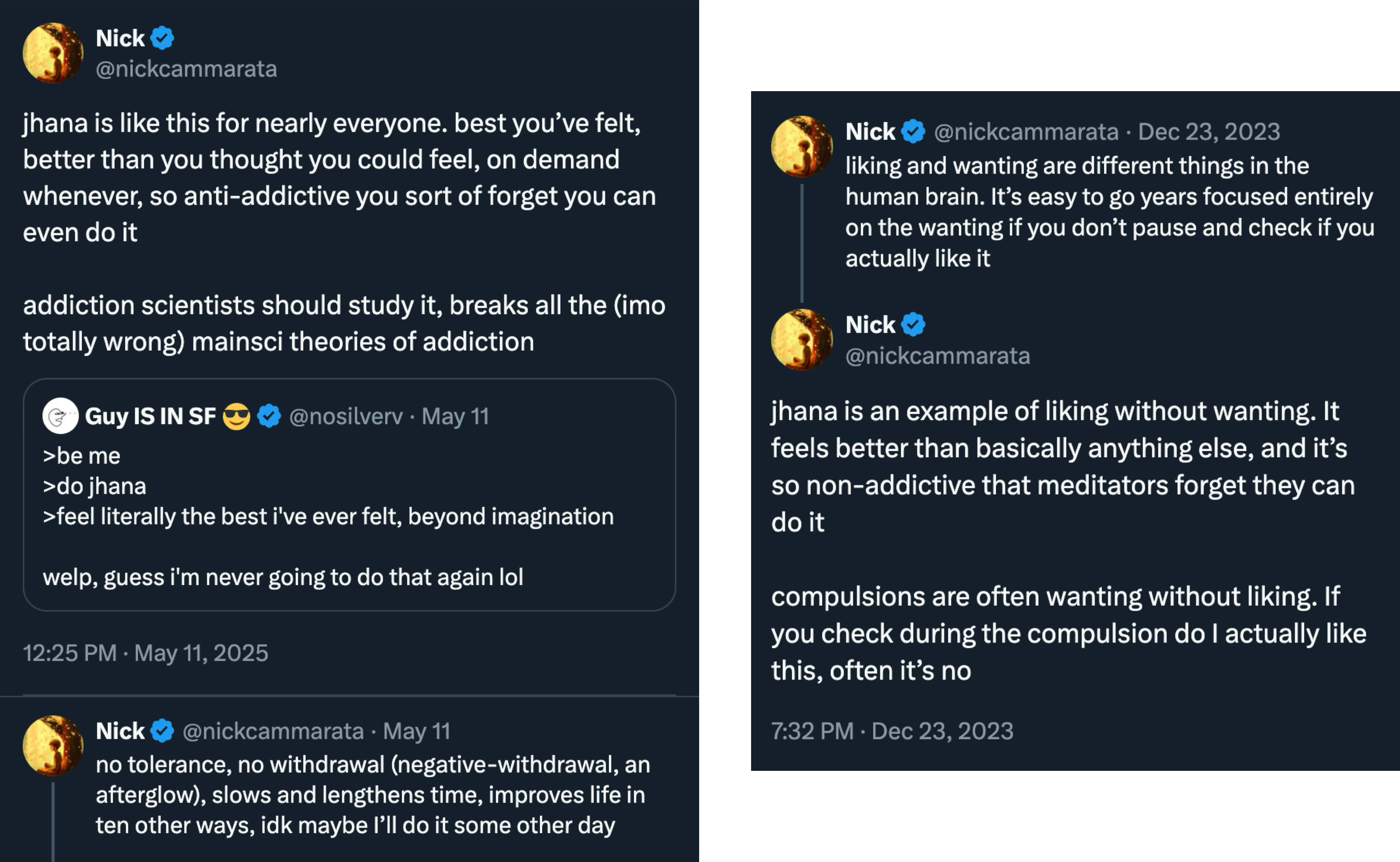 If anything, jhanas actually do the opposite of addiction, helping us cultivate equanimity and open up to life in more nourishing ways. This might seem really strange! How can better-than-MDMA experiences be non-addictive?