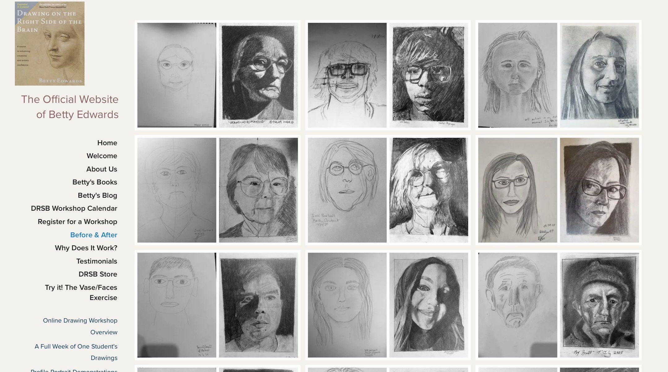 First, let me take a small detour: In general, we already have many examples of how really good pedagogy/metalearning allows us to learn way faster than usual. Not just 10% or 50% faster, but more like 10-100x faster, getting to a basic level of fluency within a few days or weeks, rather than a few years. One example I like is how Betty Edwards teaches drawing. The premise of her pedagogical method is that drawing can be broken down into a set of certain perceptual skills. She’s isolated the specific micro mental muscles that seem to fundamentally contribute to the overarching skill of drawing. Then, she makes students do exercises that she designed to activate those specific fundamental micro mental muscles (kinda like wiggling your ear for the first time). It turns out that this kind of pedagogy is robust enough to make confused/untalented beginners progress really fast5, getting to a kind of fluency that usually takes years otherwise. The below screenshot shows self-portraits drawn before and after a 5-day workshop (30-40 hours of instruction and practice).