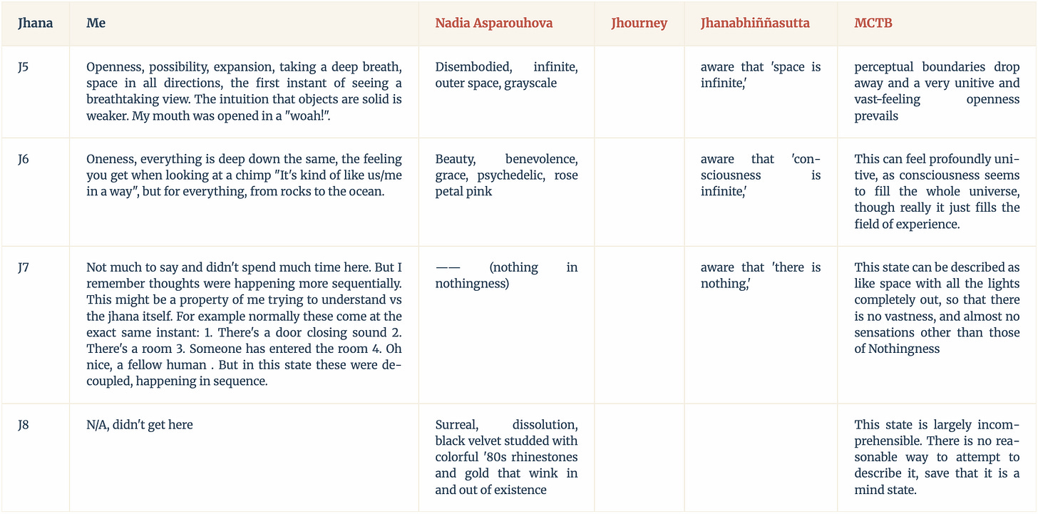 One of the things I kept hearing about were these “deep meditative states” called “jhanas.” That sounded really weird and exotic, especially when I already had some funky preconceived notions of “advanced meditation.” To make it worse, meditators sometimes use funky jargon to explain things; even the word “jhana” itself made it sound really exotic to me!2 So, I didn’t believe them for a long time, and there weren’t many good public resources on how to clearly make sense of this — everything was either a woo traditional explanation, or a practice guide for experienced meditators, or a short blog post describing someone’s retreat experience, or a non-comprehensive FAQ section, etc.